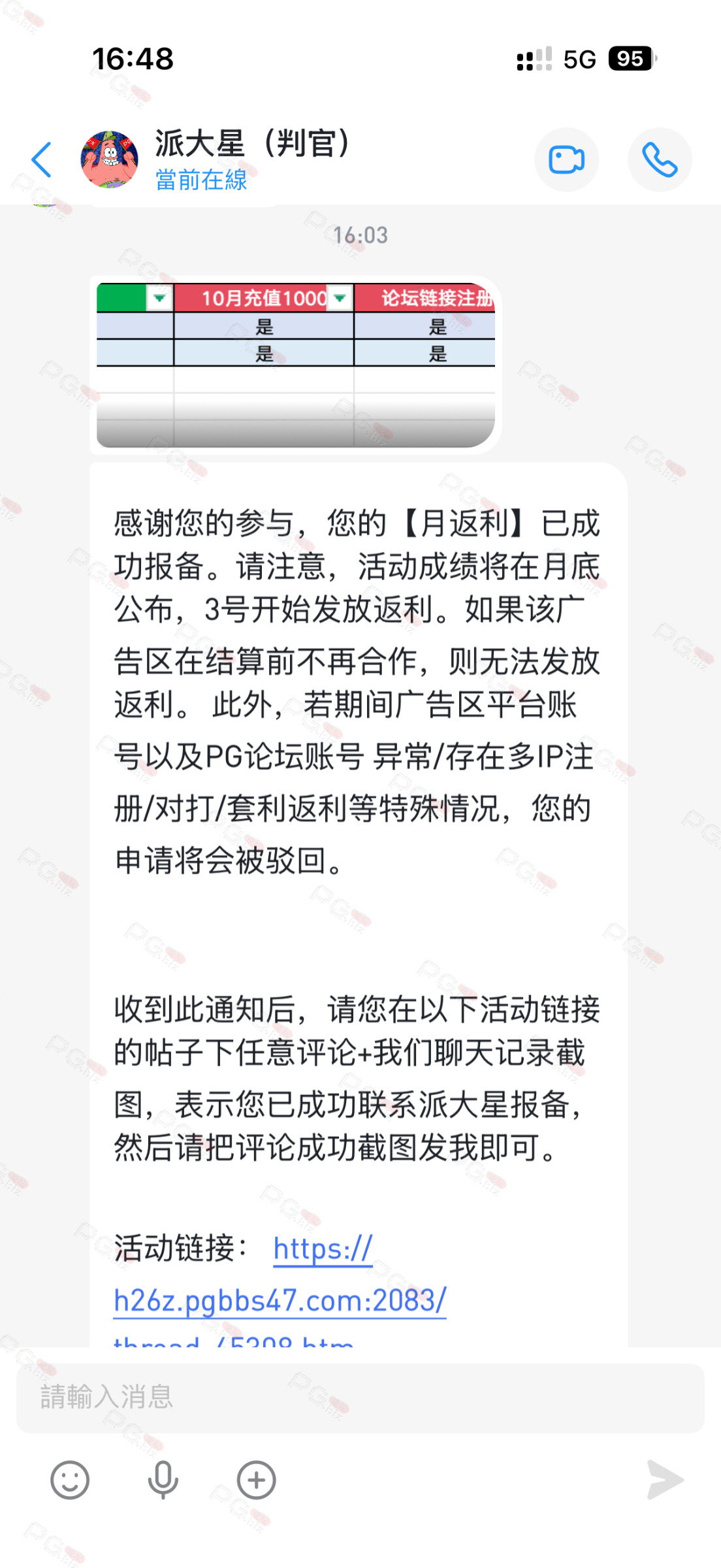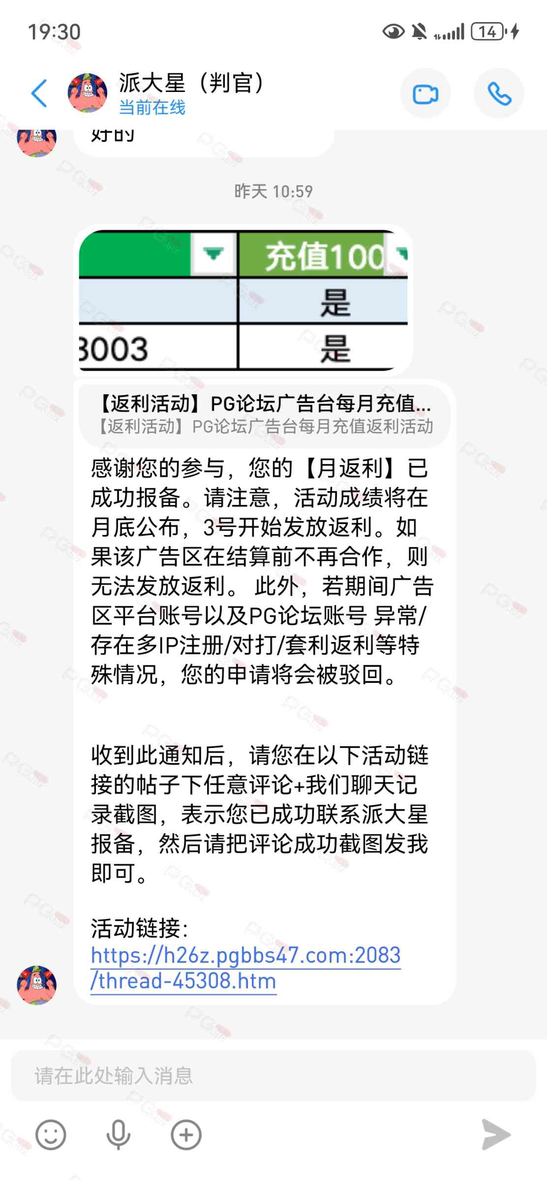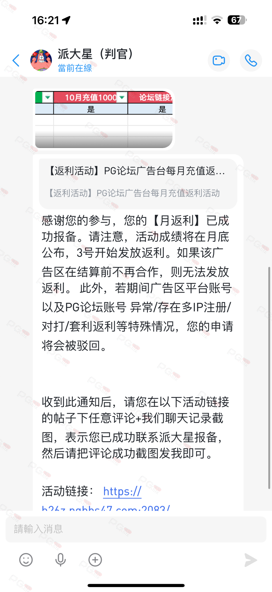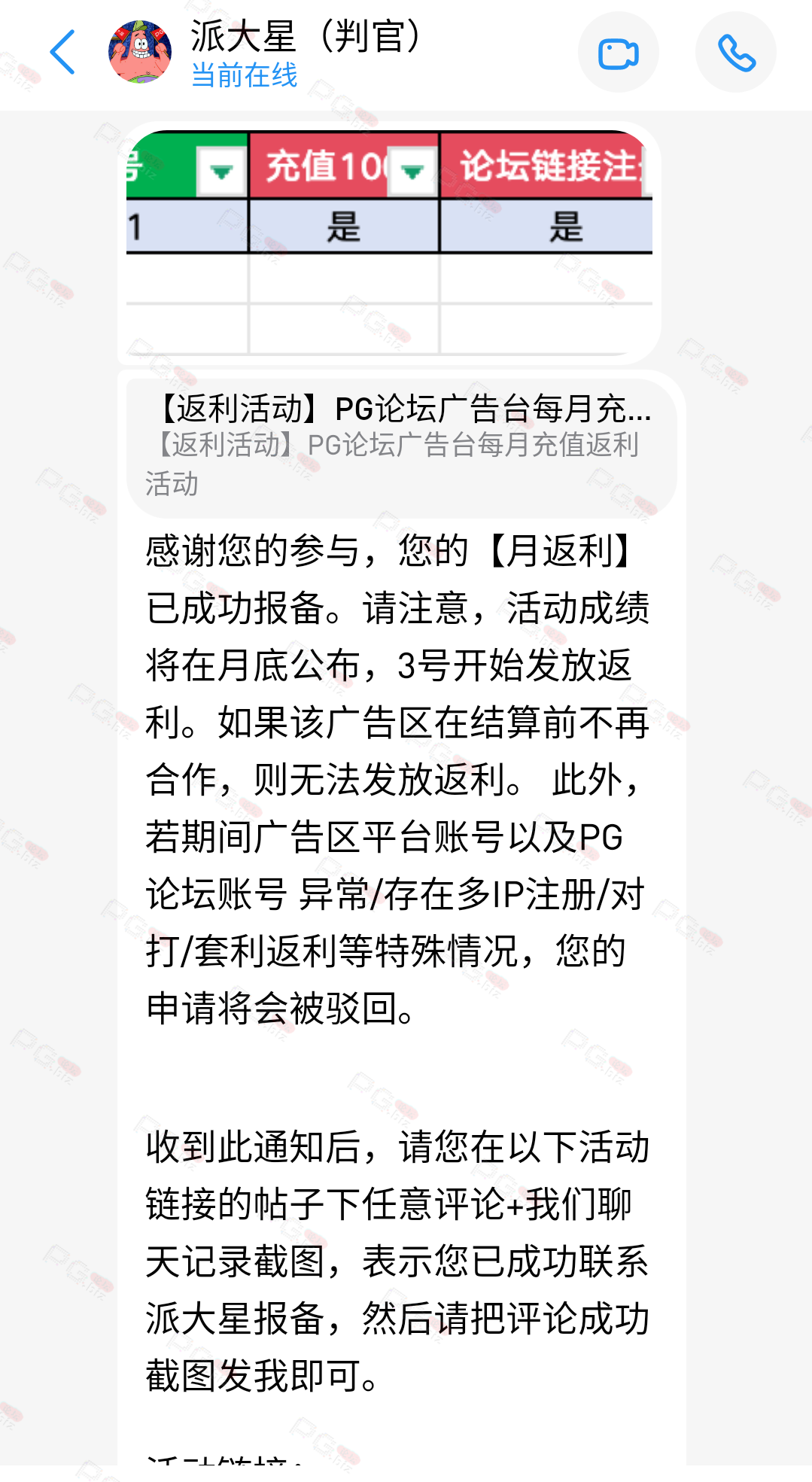 由于现在PG论坛越做越好、流量越来越高,越来越多台子来PG论坛上广告,幸运星的日子也是渐渐好起来了。论坛的进步都是靠PG论坛的兄弟们的支持。幸运星深知做人需要饮水思源的道理。正所谓施惠勿念,受恩莫忘,是时候回馈给大家了!PG论坛决定增设一个新的福利—— PG论坛广告台每月充值返利活动,以下我们简称为 【月返利】只要您在PG论坛任何一个广告区内的台子充值超过一千元,请即刻联系派大星报备,一个台子有50个名额,只要是前50名的申请的都可在下个月3号得到返利88元,不同台子可以重复申请,例如您在台子A和台子B都充值了超过一千元,都可以一齐申请,得到双份奖励!只限前50名,必须是论坛链接注册的,如果不是论坛链接注册的申请无效!(包含担保区、广告区、置顶区、横幅区,如有同时上几个广告区的台子也只能算一个,例如台子A同时上了广告区和横幅区,只是算一个)有点要说明,每个月三号结算,如果结算前该台子广告已到期不续广告,只能算无效,例如会员A在B台子10月份充值了1000元,但是11月2号该台子到期不续费了,3号结算月返利的时候所有在B台子充值过的都判为无效,不给予返利,论坛也不会做出任何补偿,望知悉。如果有中途不续费的台子,论坛会在广告合作到期的帖子通知点击浏览广告已到期不续费的台子以下是目前广告区的台子,共12家,排名不分先后1.九鼎国际 2.PG电子0870 3.威尼斯人9884 4.优越会2333 5.PG1电子 6.九鼎娱乐 7.金沙4280 8.葡京赌场4064 9.皇冠赌场10.HOME体育 11.葡京集团047 12.云霄体育12家台子,各50个席位,一份88元,也就是 12*50*88=52800大家可别嫌少,对于论坛来说这是笔不小的开销了,因为PG论坛跟其他的不一样PG论坛只收广告费,不做代理模式,论坛只会希望你赢钱,撸爆狗庄,不会希望你输钱从而吸你的血。以下是注意事项:1.必须是走论坛链接注册才有资格参与2.充值达标的会员请立即向派大星报备,例如你在1号就达标了,马上向派大星申请,越早申请越有机会3.向派大星申请后,需要派大星跟狗庄确认是否走论坛链接,充值是否达标,核对后他会告知你是否成功报备,才算有效报备4.成功报备后他那边会做出统计,成绩等3号公布5.充值记录为每个月1号至31号,越早报备越有机率获得6.不同台子可以重复参与,就算全部台子充值,都可以申请,参与越多中奖机率越高7.返利将会以钱能派发,如果没有钱能的可以兑换为PG娱乐金币400,无需打码即刻提款8.如果是以金币派发但是想搏一搏的,需要打足三倍流水,只能娱乐PG电子,不能买/藏免费,封顶提现2000金币=400元