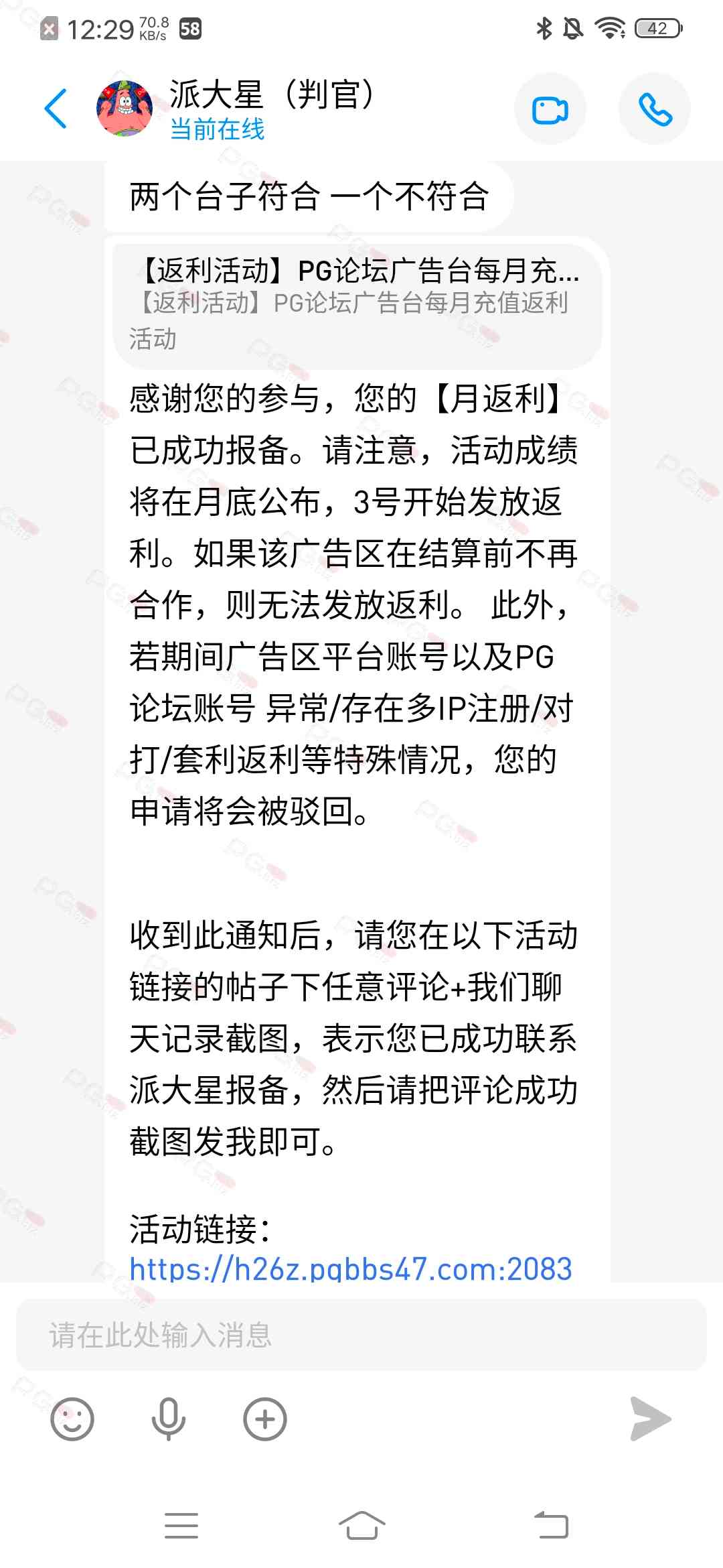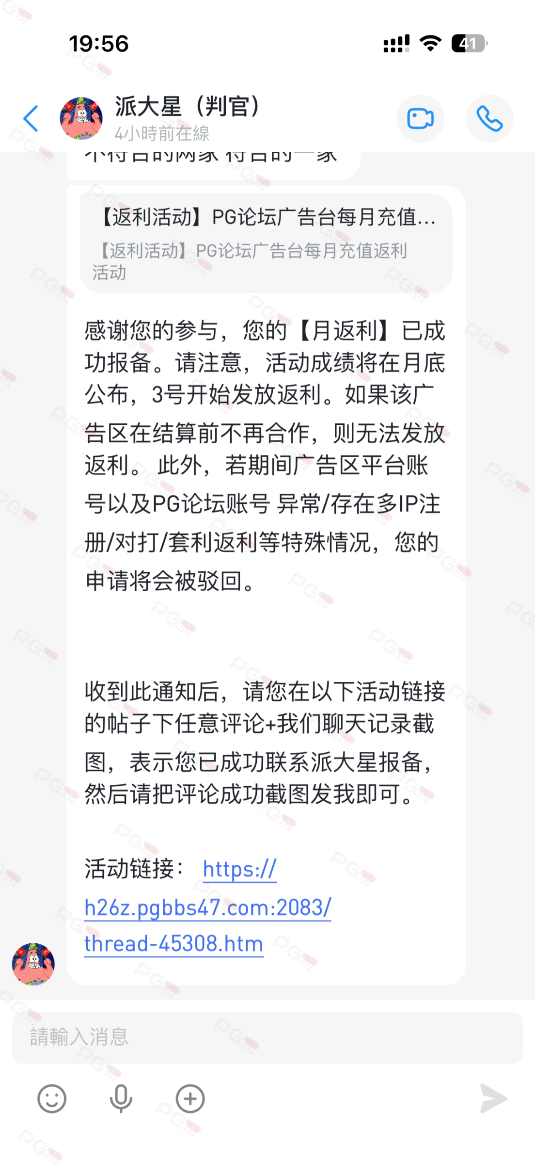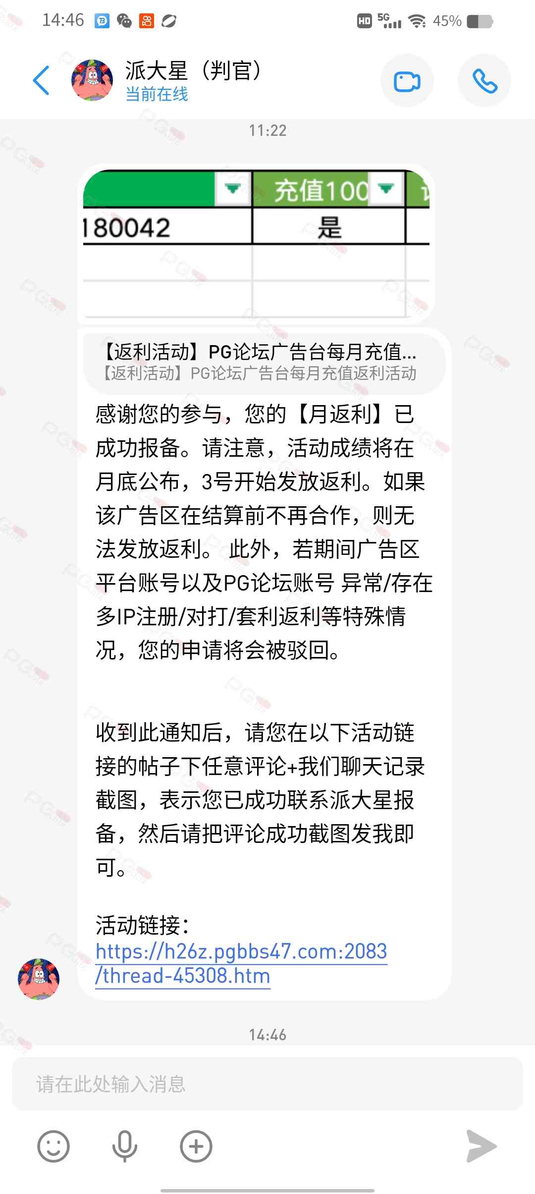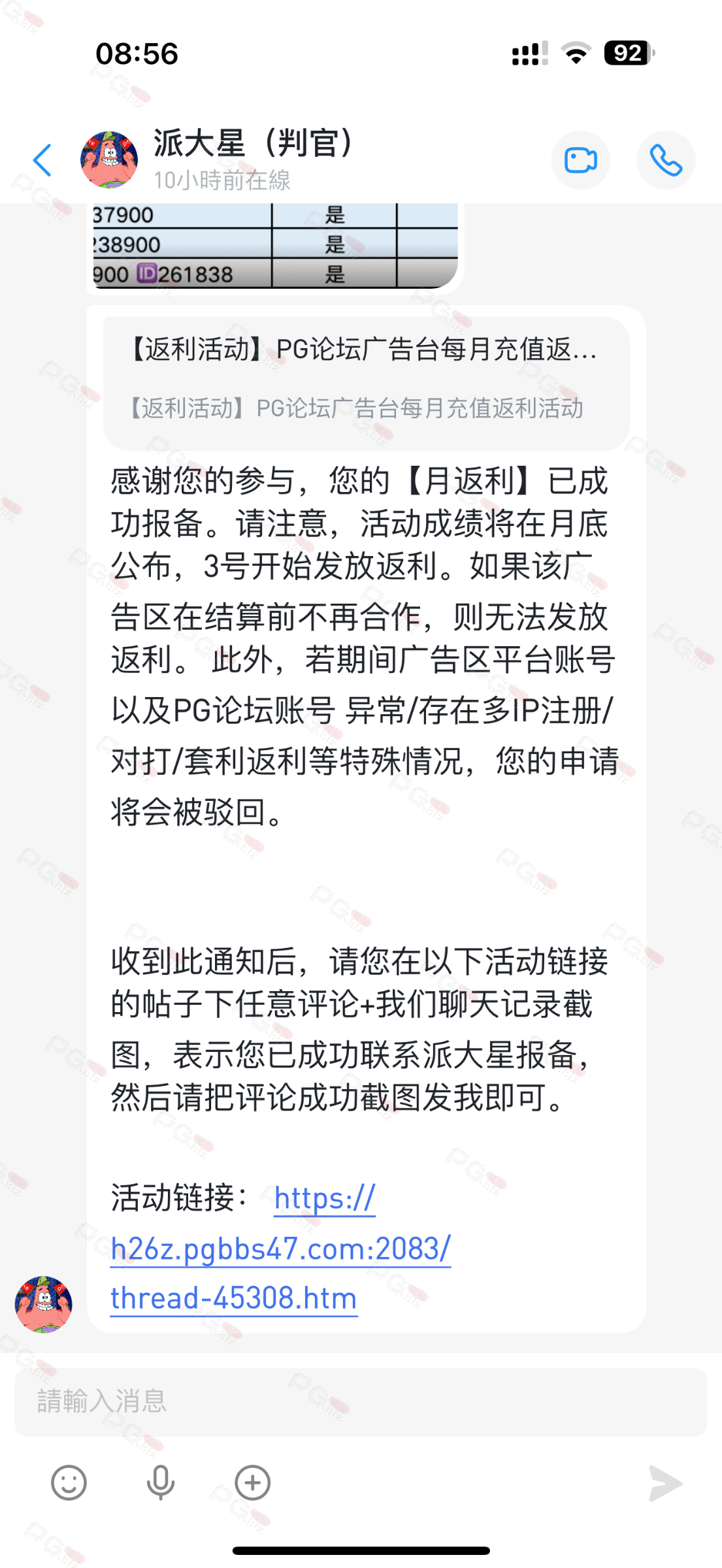 由于现在PG论坛越做越好、流量越来越高,越来越多台子来PG论坛上广告,幸运星的日子也是渐渐好起来了。论坛的进步都是靠PG论坛的兄弟们的支持。幸运星深知做人需要饮水思源的道理。正所谓施惠勿念,受恩莫忘,是时候回馈给大家了!PG论坛决定增设一个新的福利—— PG论坛广告台每月充值返利活动,以下我们简称为 【月返利】只要您在PG论坛任何一个广告区内的台子充值超过一千元,请即刻联系派大星报备,一个台子有50个名额,只要是前50名的申请的都可在下个月3号得到返利88元,不同台子可以重复申请,例如您在台子A和台子B都充值了超过一千元,都可以一齐申请,得到双份奖励!只限前50名,必须是论坛链接注册的,如果不是论坛链接注册的申请无效!(包含担保区、广告区、置顶区、横幅区,如有同时上几个广告区的台子也只能算一个,例如台子A同时上了广告区和横幅区,只是算一个)有点要说明,每个月三号结算,如果结算前该台子广告已到期不续广告,只能算无效,例如会员A在B台子10月份充值了1000元,但是11月2号该台子到期不续费了,3号结算月返利的时候所有在B台子充值过的都判为无效,不给予返利,论坛也不会做出任何补偿,望知悉。如果有中途不续费的台子,论坛会在广告合作到期的帖子通知点击浏览广告已到期不续费的台子以下是目前广告区的台子,共12家,排名不分先后1.九鼎国际 2.PG电子0870 3.威尼斯人9884 4.优越会2333 5.PG1电子 6.九鼎娱乐 7.金沙4280 8.葡京赌场4064 9.皇冠赌场10.HOME体育 11.葡京集团047 12.云霄体育12家台子,各50个席位,一份88元,也就是 12*50*88=52800大家可别嫌少,对于论坛来说这是笔不小的开销了,因为PG论坛跟其他的不一样PG论坛只收广告费,不做代理模式,论坛只会希望你赢钱,撸爆狗庄,不会希望你输钱从而吸你的血。以下是注意事项:1.必须是走论坛链接注册才有资格参与2.充值达标的会员请立即向派大星报备,例如你在1号就达标了,马上向派大星申请,越早申请越有机会3.向派大星申请后,需要派大星跟狗庄确认是否走论坛链接,充值是否达标,核对后他会告知你是否成功报备,才算有效报备4.成功报备后他那边会做出统计,成绩等3号公布5.充值记录为每个月1号至31号,越早报备越有机率获得6.不同台子可以重复参与,就算全部台子充值,都可以申请,参与越多中奖机率越高7.返利将会以钱能派发,如果没有钱能的可以兑换为PG娱乐金币400,无需打码即刻提款8.如果是以金币派发但是想搏一搏的,需要打足三倍流水,只能娱乐PG电子,不能买/藏免费,封顶提现2000金币=400元