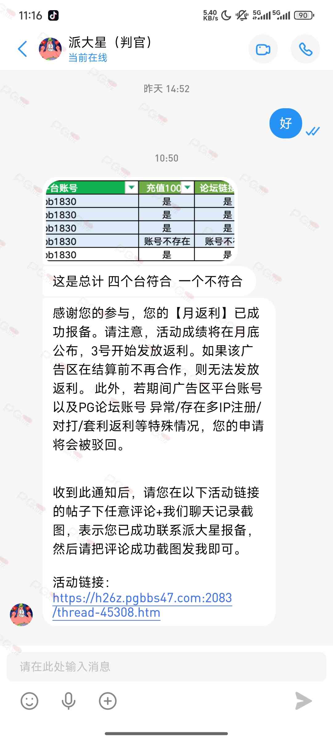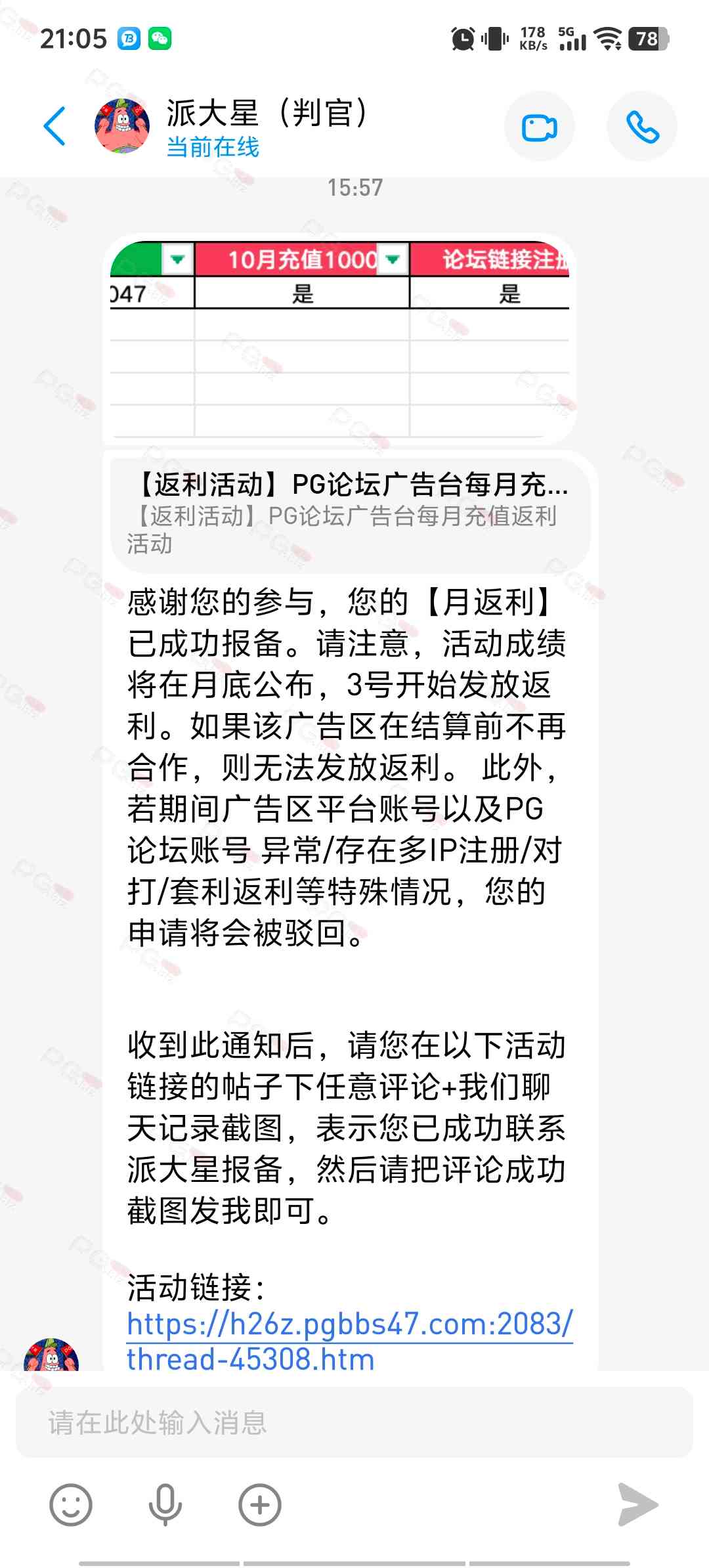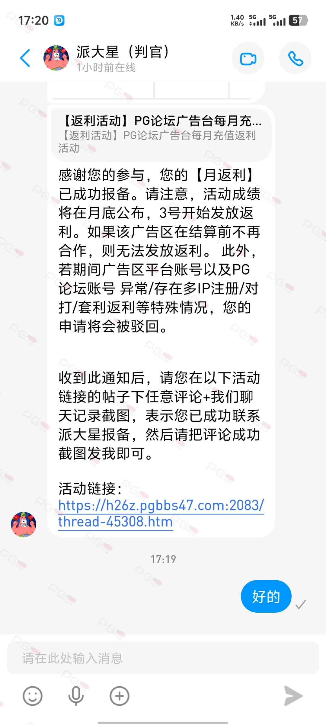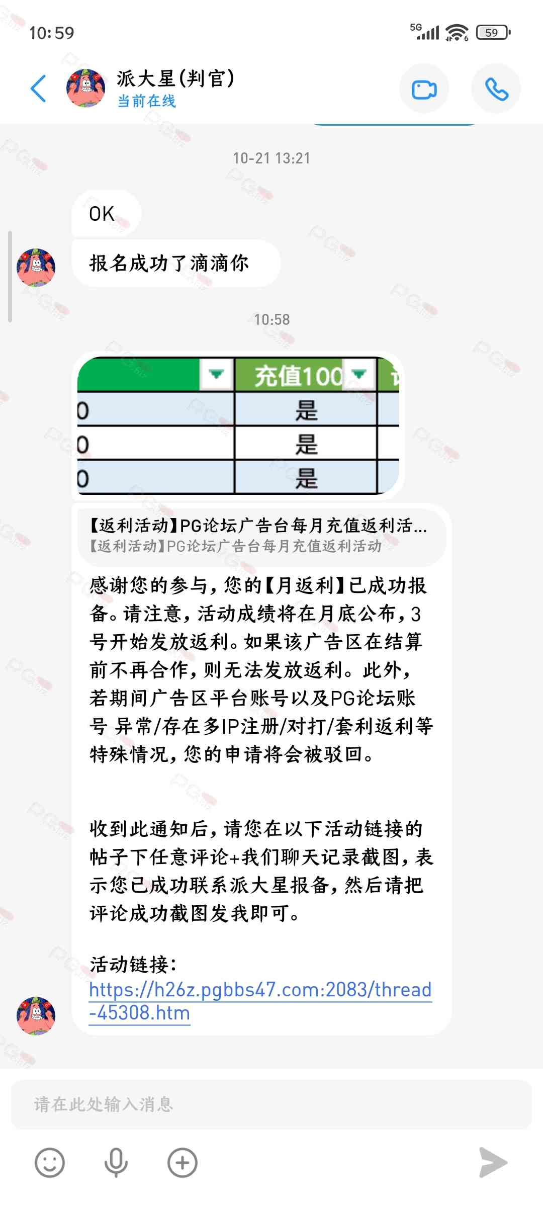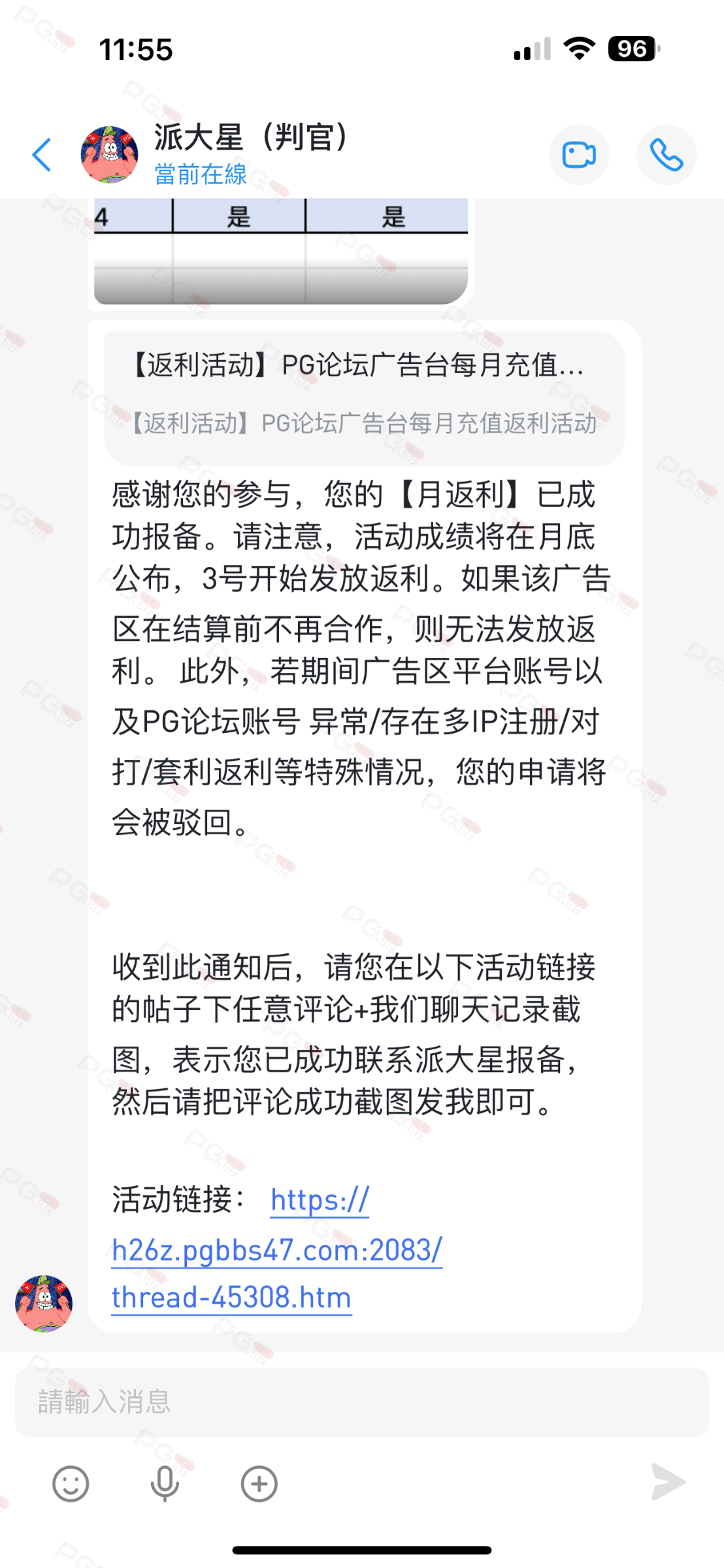 由于现在PG论坛越做越好、流量越来越高,越来越多台子来PG论坛上广告,幸运星的日子也是渐渐好起来了。论坛的进步都是靠PG论坛的兄弟们的支持。幸运星深知做人需要饮水思源的道理。正所谓施惠勿念,受恩莫忘,是时候回馈给大家了!PG论坛决定增设一个新的福利—— PG论坛广告台每月充值返利活动,以下我们简称为 【月返利】只要您在PG论坛任何一个广告区内的台子充值超过一千元,请即刻联系派大星报备,一个台子有50个名额,只要是前50名的申请的都可在下个月3号得到返利88元,不同台子可以重复申请,例如您在台子A和台子B都充值了超过一千元,都可以一齐申请,得到双份奖励!只限前50名,必须是论坛链接注册的,如果不是论坛链接注册的申请无效!(包含担保区、广告区、置顶区、横幅区,如有同时上几个广告区的台子也只能算一个,例如台子A同时上了广告区和横幅区,只是算一个)有点要说明,每个月三号结算,如果结算前该台子广告已到期不续广告,只能算无效,例如会员A在B台子10月份充值了1000元,但是11月2号该台子到期不续费了,3号结算月返利的时候所有在B台子充值过的都判为无效,不给予返利,论坛也不会做出任何补偿,望知悉。如果有中途不续费的台子,论坛会在广告合作到期的帖子通知点击浏览广告已到期不续费的台子以下是目前广告区的台子,共12家,排名不分先后1.九鼎国际 2.PG电子0870 3.威尼斯人9884 4.优越会2333 5.PG1电子 6.九鼎娱乐 7.金沙4280 8.葡京赌场4064 9.皇冠赌场10.HOME体育 11.葡京集团047 12.云霄体育12家台子,各50个席位,一份88元,也就是 12*50*88=52800大家可别嫌少,对于论坛来说这是笔不小的开销了,因为PG论坛跟其他的不一样PG论坛只收广告费,不做代理模式,论坛只会希望你赢钱,撸爆狗庄,不会希望你输钱从而吸你的血。以下是注意事项:1.必须是走论坛链接注册才有资格参与2.充值达标的会员请立即向派大星报备,例如你在1号就达标了,马上向派大星申请,越早申请越有机会3.向派大星申请后,需要派大星跟狗庄确认是否走论坛链接,充值是否达标,核对后他会告知你是否成功报备,才算有效报备4.成功报备后他那边会做出统计,成绩等3号公布5.充值记录为每个月1号至31号,越早报备越有机率获得6.不同台子可以重复参与,就算全部台子充值,都可以申请,参与越多中奖机率越高7.返利将会以钱能派发,如果没有钱能的可以兑换为PG娱乐金币400,无需打码即刻提款8.如果是以金币派发但是想搏一搏的,需要打足三倍流水,只能娱乐PG电子,不能买/藏免费,封顶提现2000金币=400元