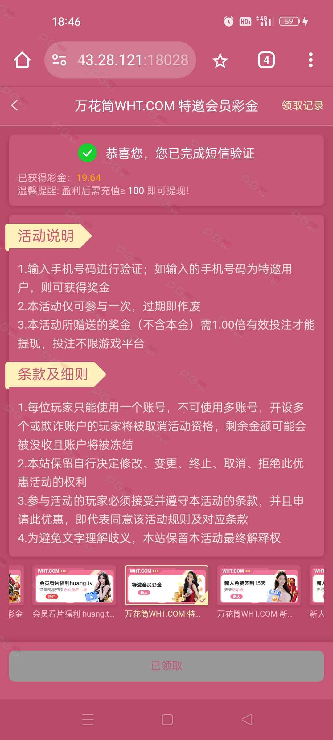 接到电话,注册自助领取,盈利需要充值 自行琢磨哈