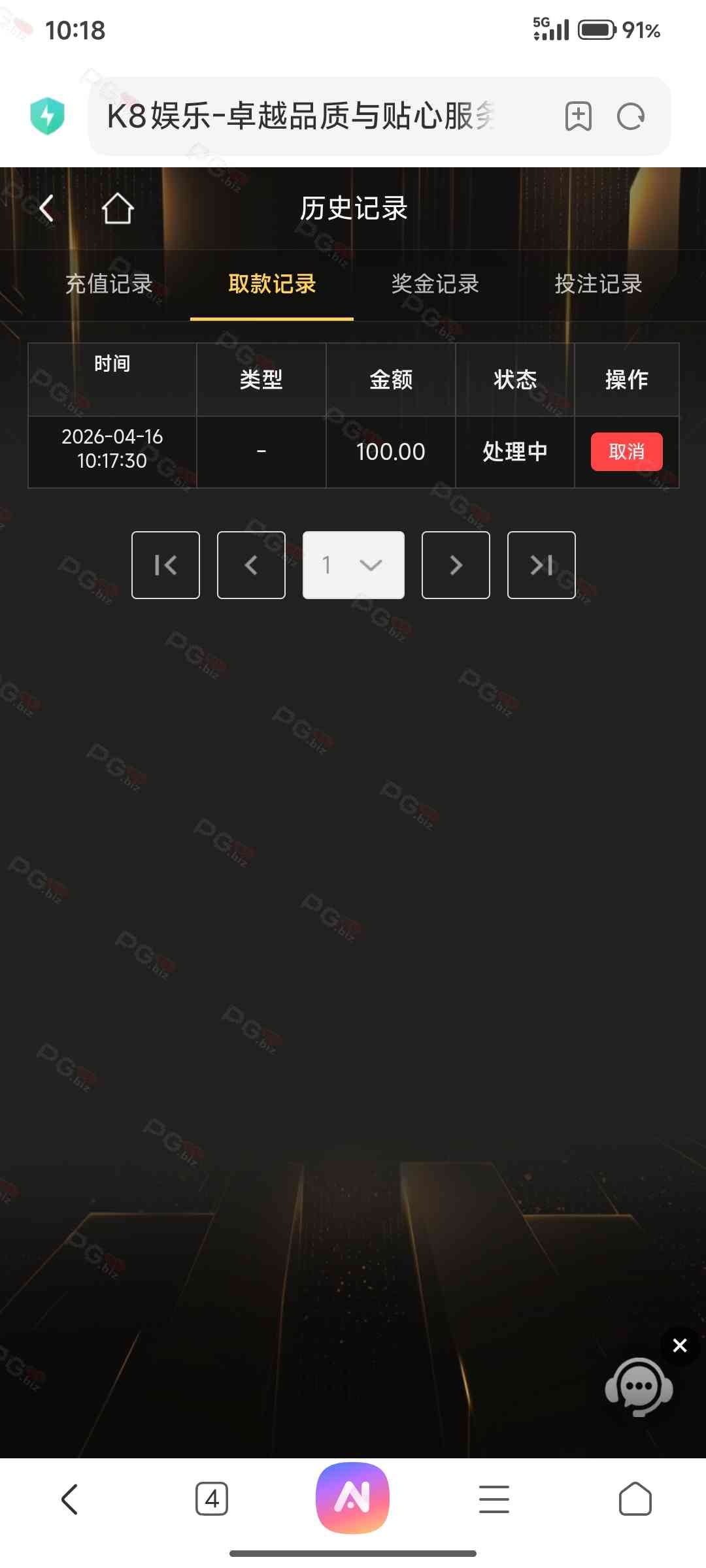 进去了 刚刚打100提现了